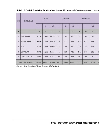 Tabel 18 Jumlah Penduduk Berdasarkan Agama Kecamatan Mayangan Sampai Desember 2018