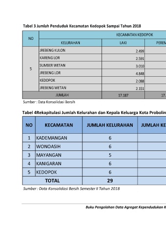 Tabel 4Rekapitulasi Jumlah Kelurahan dan Kepala Keluarga Kota Probolinggo Sampai Bulan Desember2018