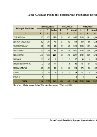 Tabel 9. Jumlah Penduduk Berdasarkan Pendidikan Kecamatan Kanigaran Kota Probolinggo Semester I Tahun 2020