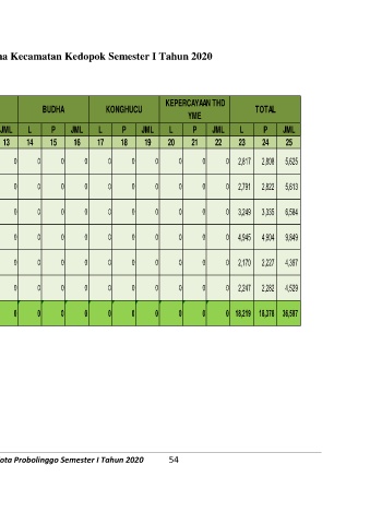 Tabel 20 Jumlah Penduduk Berdasarkan Agama Kecamatan Kedopok Semester I Tahun 2020