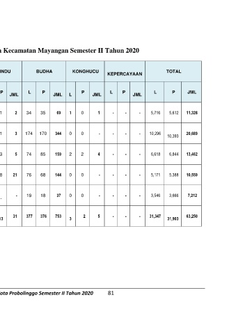 Buku Pengolahan Data Agregat Kependudukan Kota Probolinggo Semester II Tahun 2020 81
