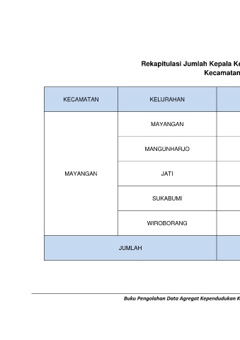 Rekapitulasi Jumlah Kepala Keluarga Semester I Tahun 2021