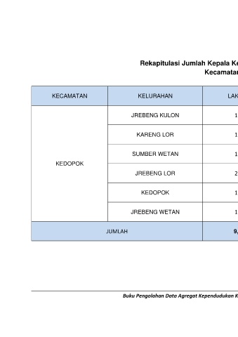 Rekapitulasi Jumlah Kepala Keluarga Semester I Tahun 2021