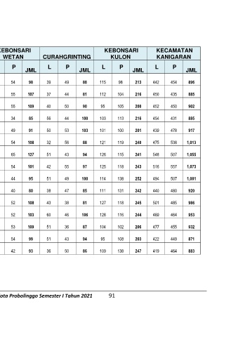 Buku Pengolahan Data Agregat Kependudukan Kota Probolinggo Semester I Tahun 2021 91