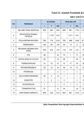 Tabel 22. Jumlah Penduduk Kota Probolinggo berdasarkan Pekerjaan