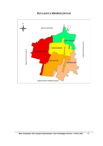 PETA KOTA PROBOLINGGO Buku Pengolahan Data Agregat Kependudukan Kota Probolinggo Semester II Tahun 2021 vii