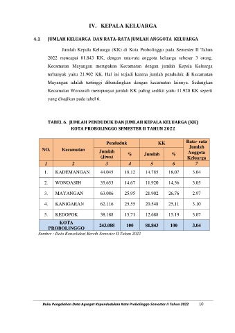 4.1 JUMLAH KELUARGA DAN RATA-RATA JUMLAH ANGGOTA KELUARGA