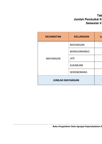 Jumlah Penduduk Kecamatan Mayangan