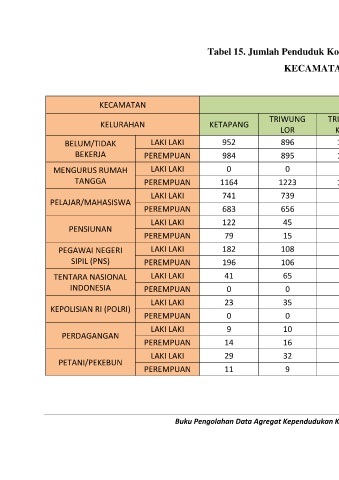 Tabel 15. Jumlah Penduduk Kota Probolinggo berdasarkan Pekerjaan