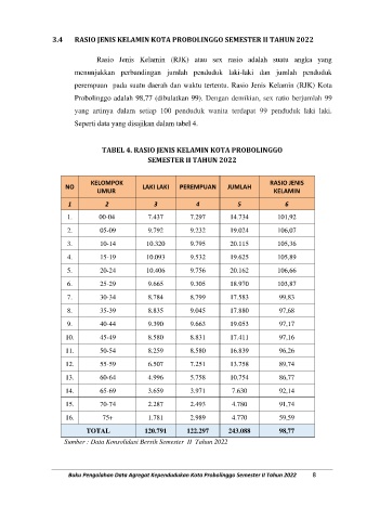 3.4 RASIO JENIS KELAMIN KOTA PROBOLINGGO SEMESTER II TAHUN 2022