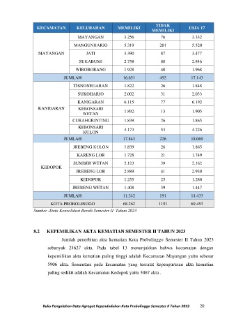 8.2 KEPEMILIKAN AKTA KEMATIAN SEMESTER II TAHUN 2023