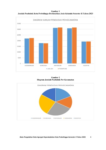 Gambar 1 Jumlah Penduduk Kota Probolinggo Berdasarkan Jenis Kelamin Semester II Tahun 2023 Gambar 2 Diagram Jumlah Penduduk Per-Kecamatan Buku Pengolahan Data Agregat Kependudukan Kota Probolinggo Semester II Tahun 2023 4