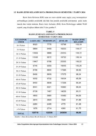 3.5 RASIO JENIS KELAMIN KOTA PROBOLINGGO SEMESTER I TAHUN 2024