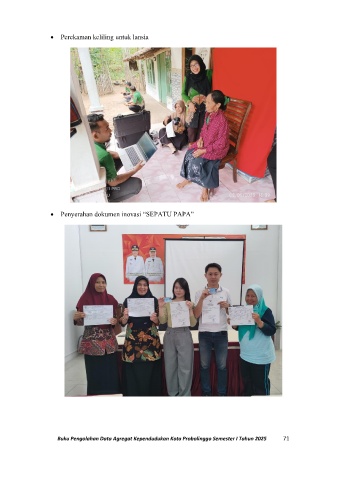 • Perekaman keliling untuk lansia • Penyerahan dokumen inovasi “SEPATU PAPA” Buku Pengolahan Data Agregat Kependudukan Kota Probolinggo Semester I Tahun 2025 71