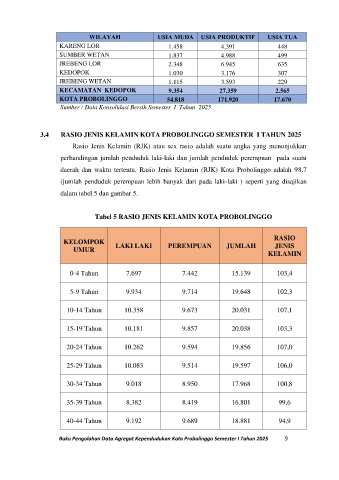 Tabel 5 RASIO JENIS KELAMIN KOTA PROBOLINGGO