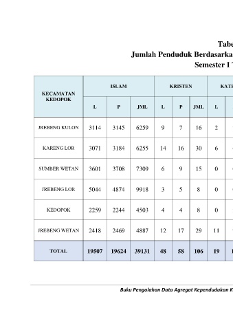 Jumlah Penduduk Berdasarkan Agama Kecamatan Kedopok