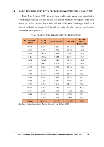 3.4 RASIO JENIS KELAMIN KOTA PROBOLINGGO SEMESTER II TAHUN 2025