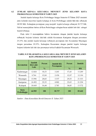 TABEL 8 JUMLAH KEPALA KELUARGA (KK) MENURUT JENIS KELAMIN